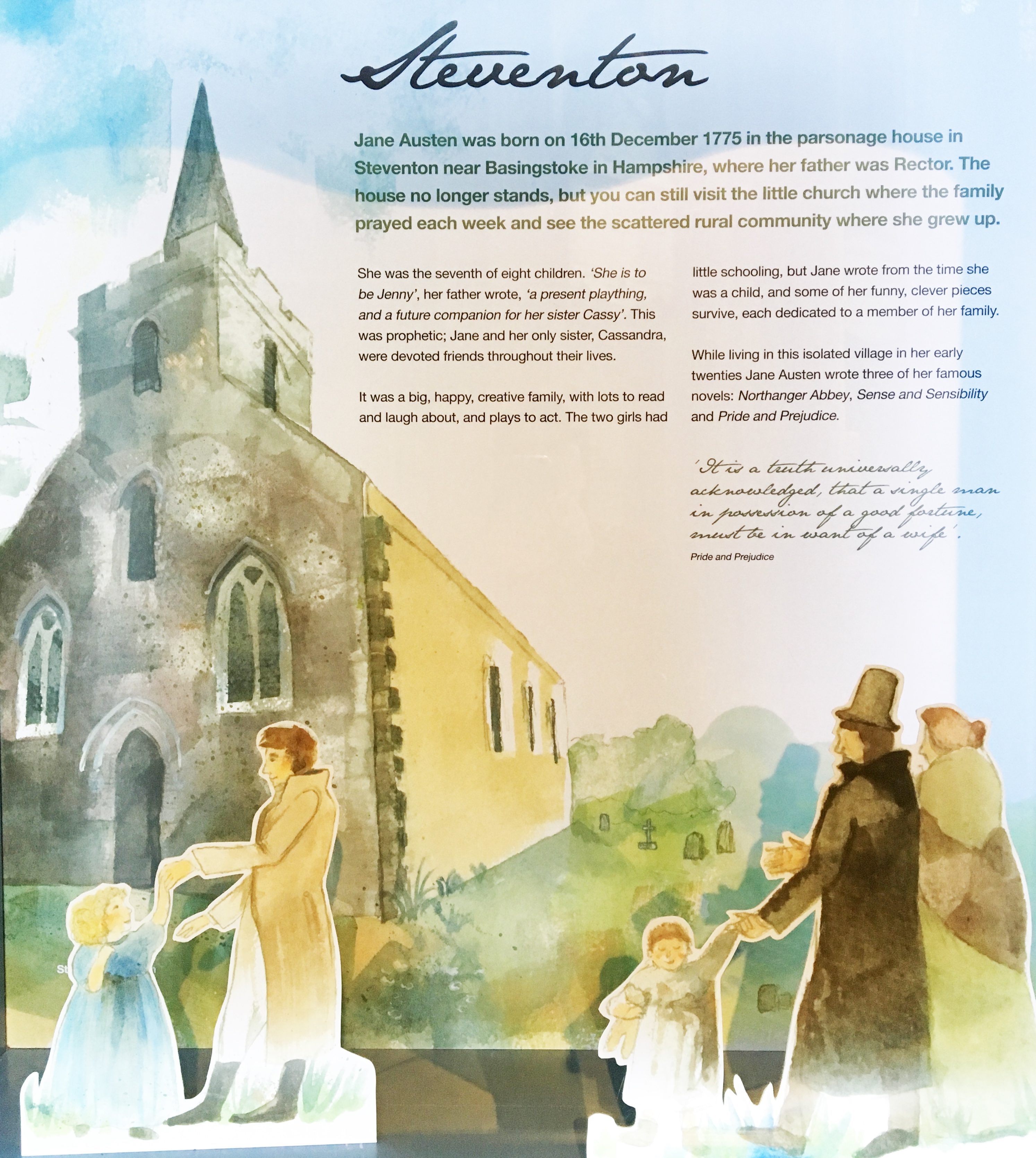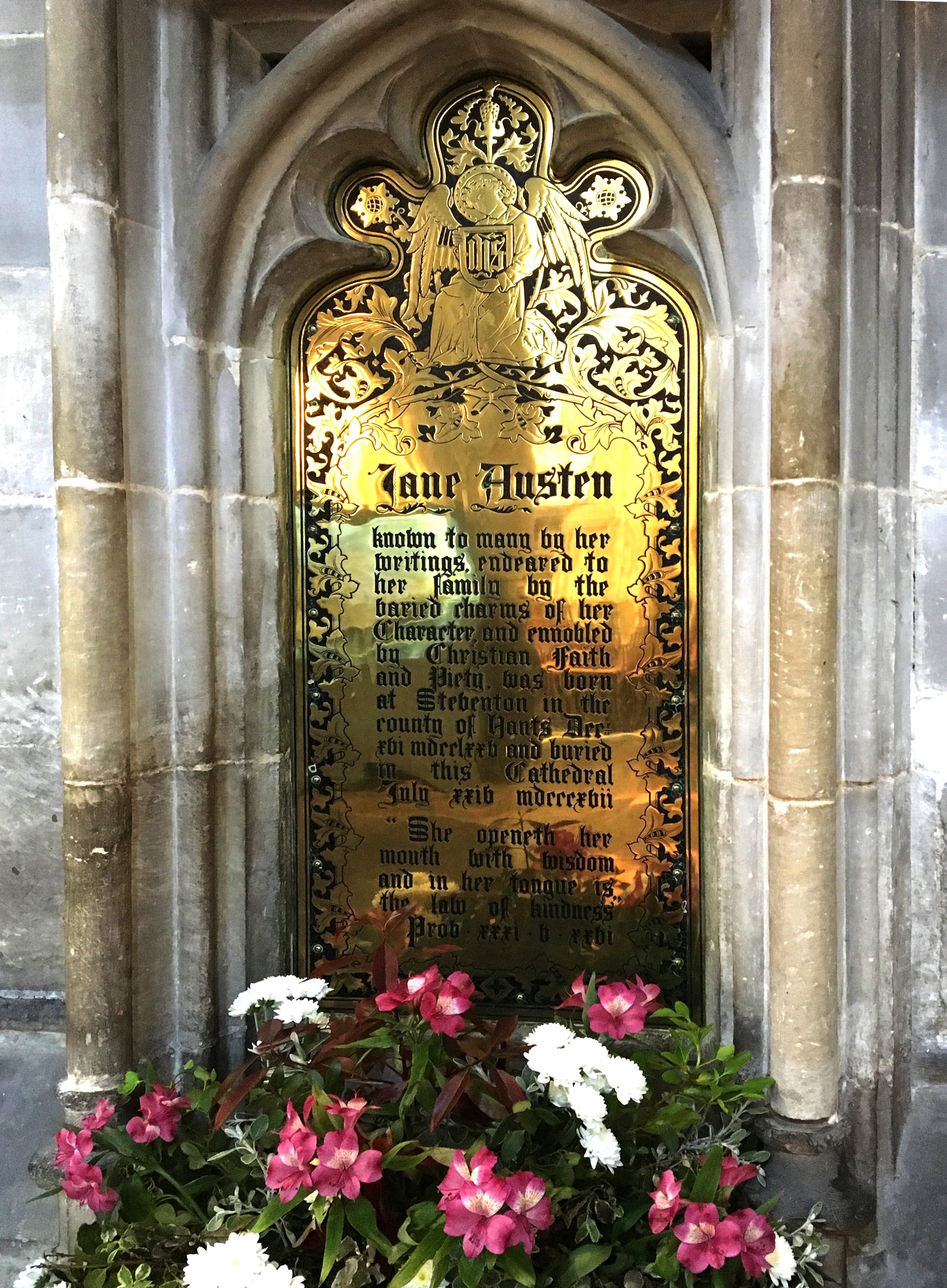 2017 is a great year for anniversaries!  While my traveling to Europe is primarily to celebrate the Golden Jubilee of the Catholic Charismatic Renewal (in Rome at Pentecost), I was delighted to find out that it is also the 200th anniversary of the death of Jane Austen, to be celebrated beginning on her birthday in July.  Though a little early for some of the major celebrations, I was able to visit a few sites that are connected to her, after surviving many dangers, toils, and snares (see post on Letting Go in Hampshire). Enjoy!